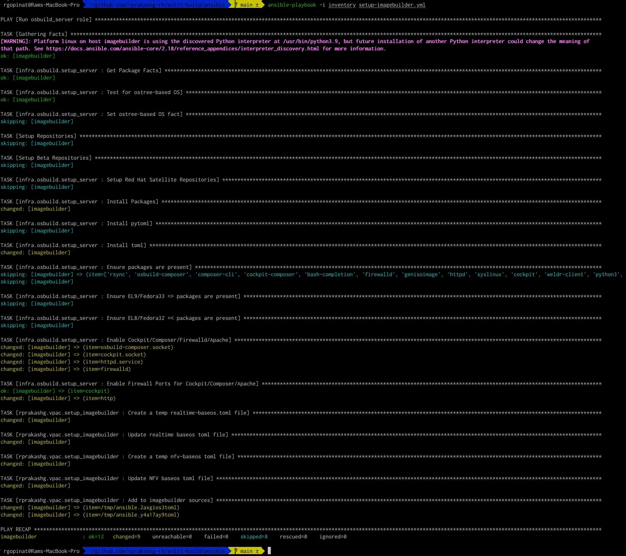 ansible-playbook -i inventory setup_imagebuilder.ymlIf everything goes well we should see an output like below screen capture
