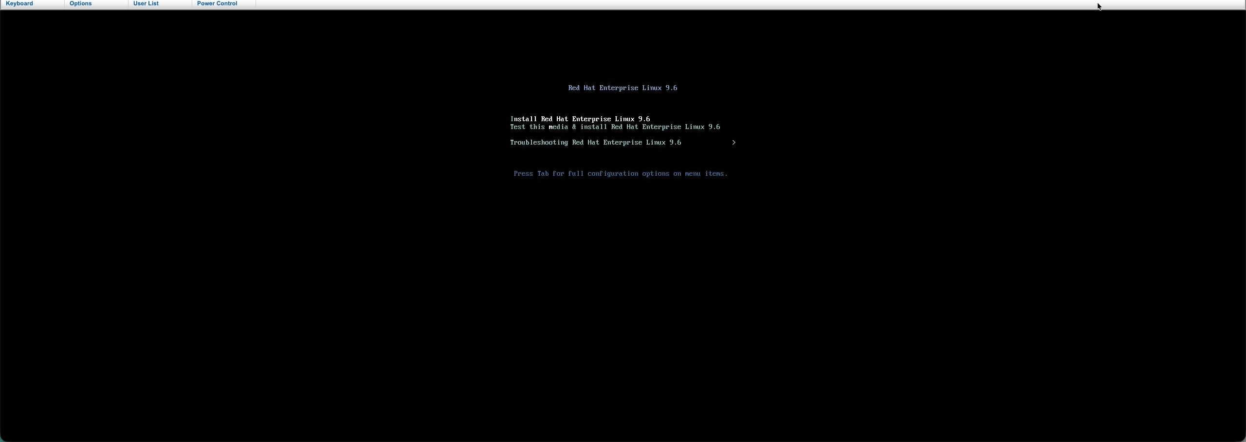 Once the system boots from the ISO, you’ll see the familiar RHEL boot menu: